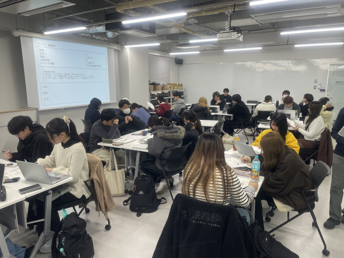 今回のPBL(Project-Based Learning)では、熊本市から与えられたテーマに、両大学の学生が混成チームを組んで取り組みました。熊本市職員による課題説明と問題提起が行われ、学生たちはグループに分かれて現状分析やディスカッションを重ね、熊本市職員や両大学の教員からのフィードバックを受けました。